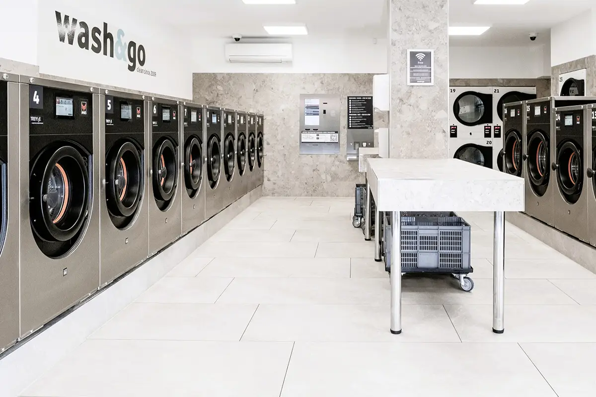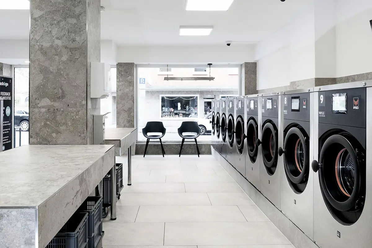 Bei Wash&Go – deinem SB-Waschsalon in Stuttgart West wäschst und trocknest du deine Wäsche selbstständig mit modernen Großraum-Waschmaschinen. Der Waschsalon Stuttgart West bietet schnelle Waschzeiten, feste Preise und große Maschinen bis 18 Kg sowie Trockner bis 20 Kg. Ideal für große Wäschemengen und für alle ohne eigene Waschmaschine oder Trockner in Stuttgart West.
